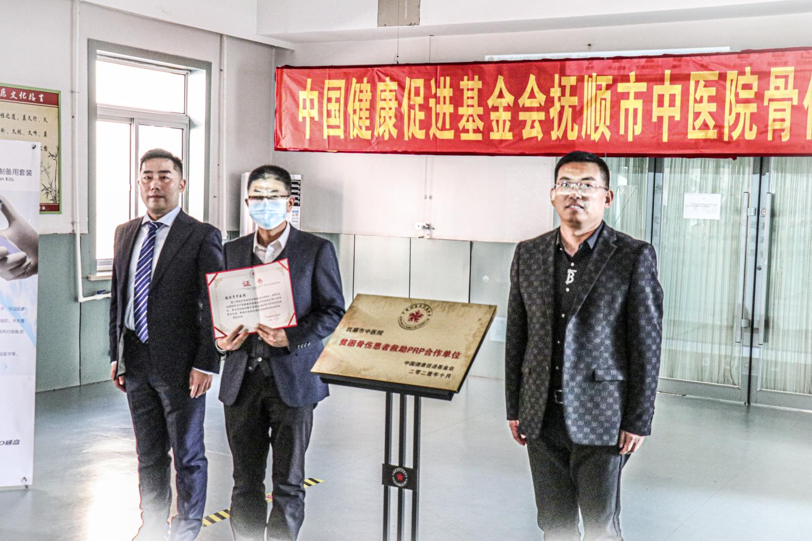 中國健康促進基金會撫順市中醫(yī)院貧困骨傷患者救助貧困骨傷患者公益項目PRP合作單位揭牌